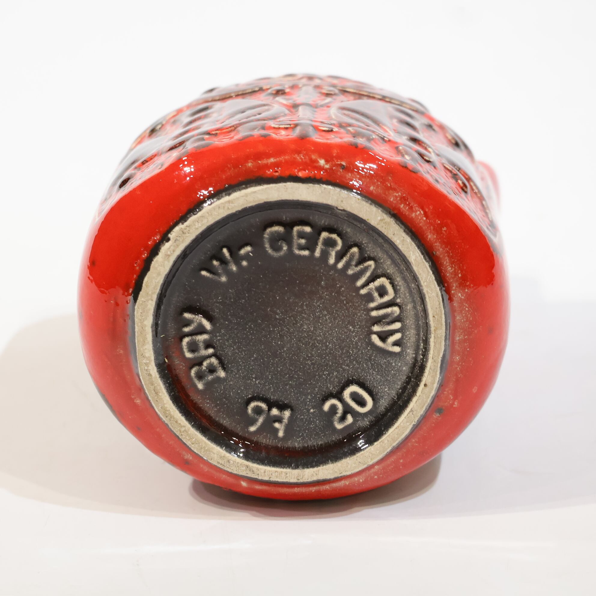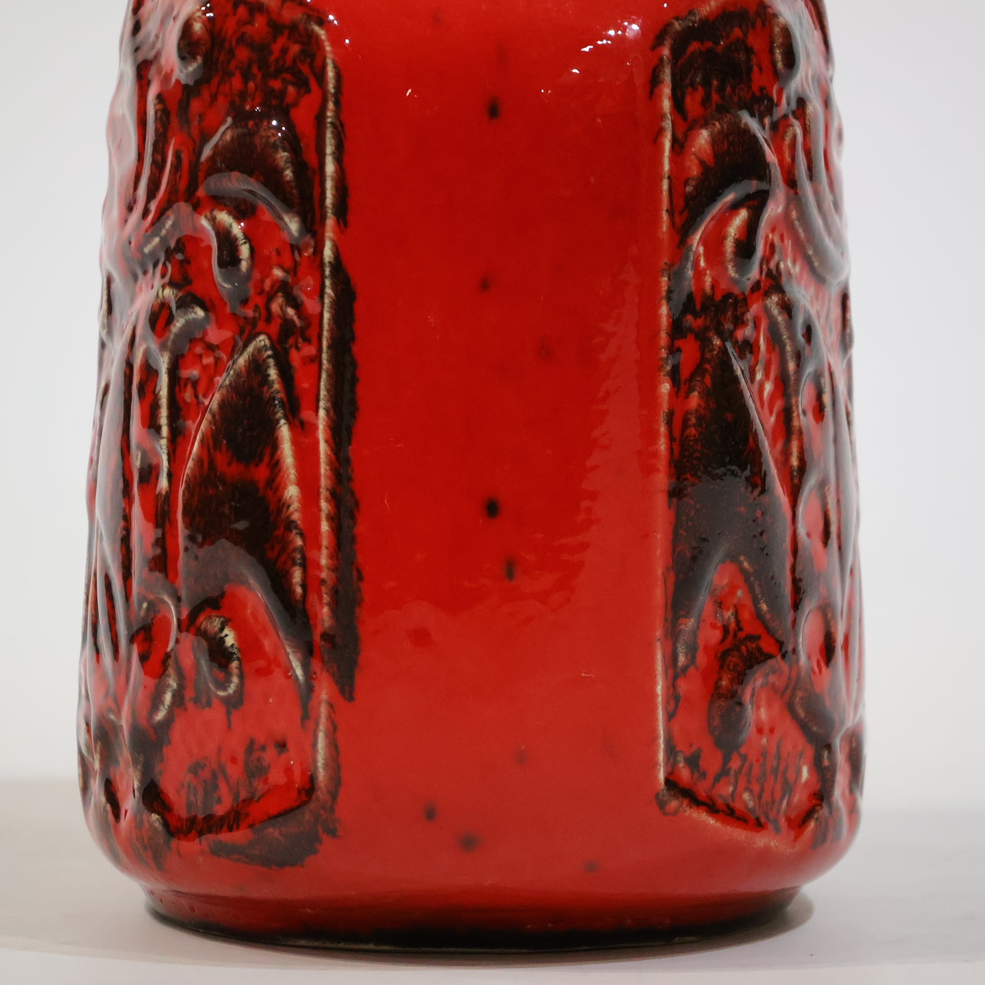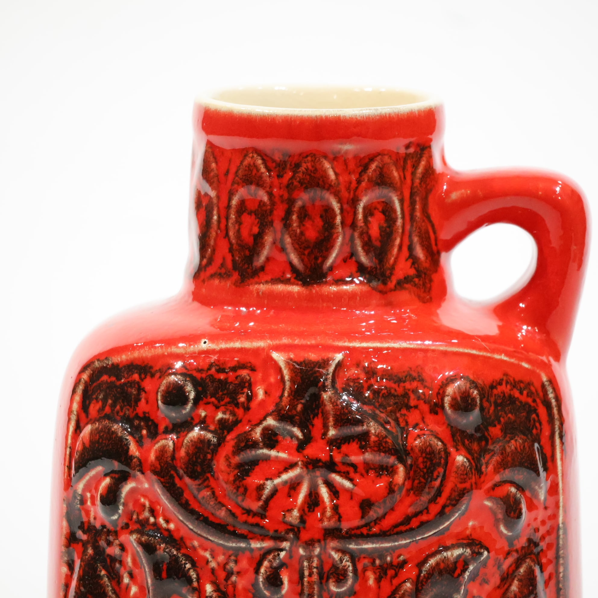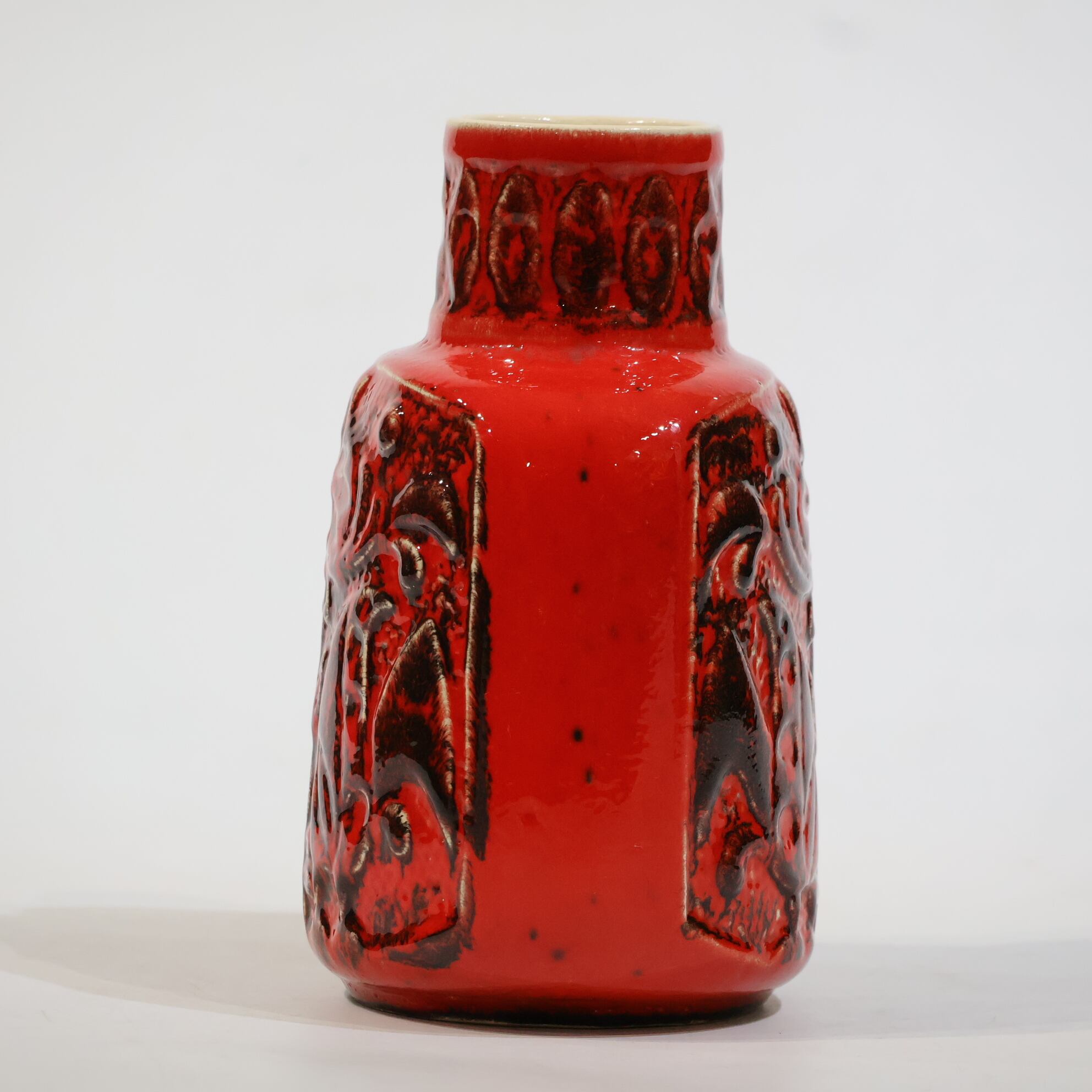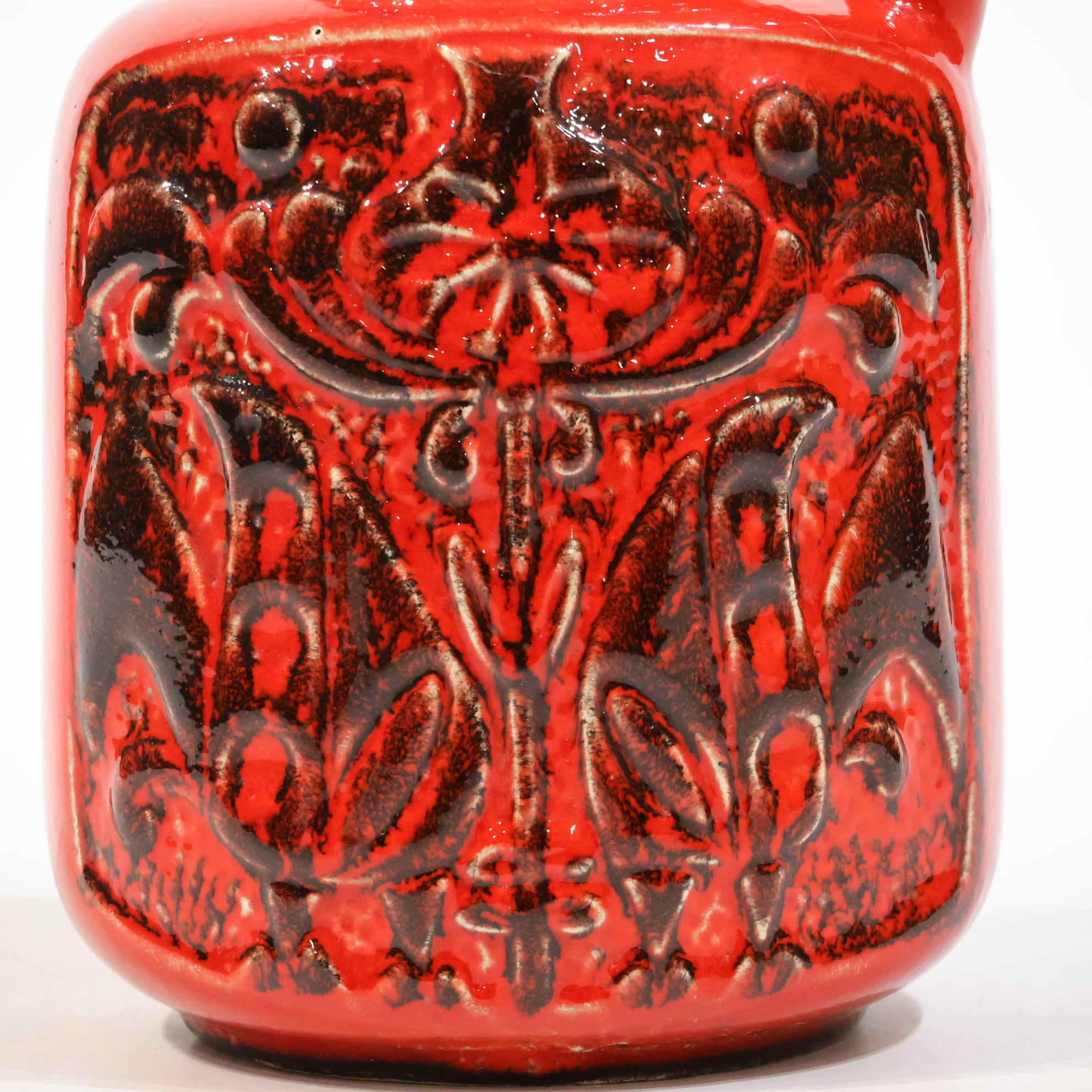 1960年代からのスタイルとしては、 当時広く流行していた色彩の釉薬(マットまたは 光沢あり)を使用し、シンプルなフォルムの上に様 式化した花の図柄の型押しや幾何学模様をあし らったものが多く、Scheurichのも のと混同されがちです。
