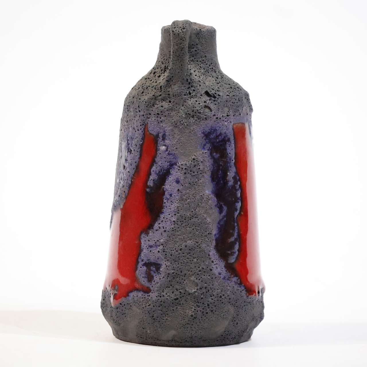 鮮やかなエナメルレッドの上に冷えて固まった溶岩石のような釉薬が施されています。一点ずつ釉薬の施され方に個性が出ていて、型別で集められたりもしているコレクターに人気のシリーズです。