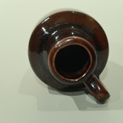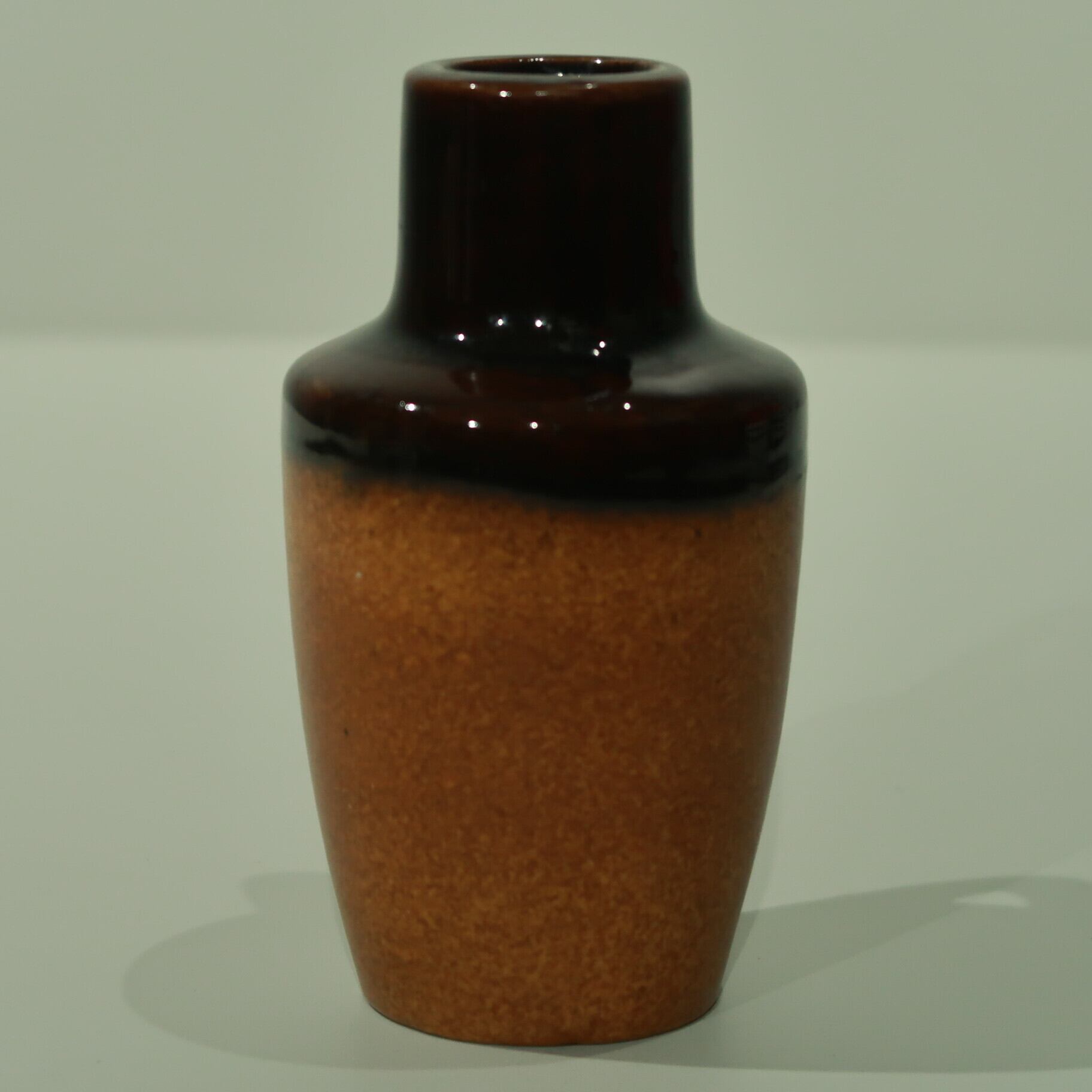 マットで明るいライトブラウンの上部に美しいダークブラウンの艶のある釉薬を施したツートーンカラーの小ぶりな一点です。
