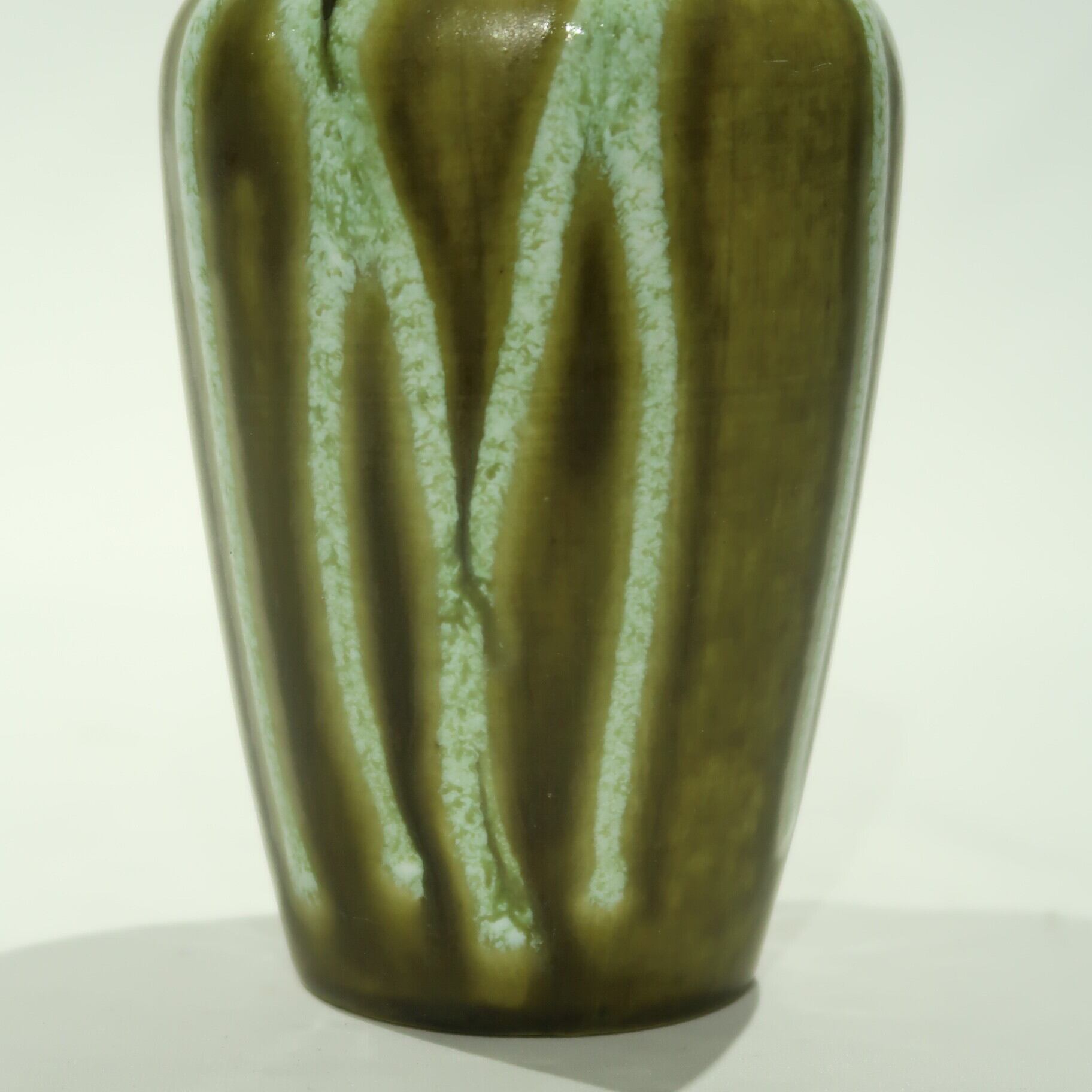 同社は急速に成長し、1950~80年代には陶 器製造の分野でドイツ最大のメーカーとなり、今日も確固たる地位を維持しています。形状に加えて釉薬でも、当時は最も幅広い品揃えを誇った他、輸出量も最大だったため、現在でも同社の製品はよく見られます。特に円筒形を基調にし たシンプルな形状で、型押し模様のある床置き 花瓶が代表的。色彩については当時主流だっ た赤やオレンジから、クリーム、ベージュ、茶色 などが多くを占めています。