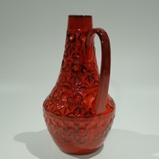 1960年代からのスタイルとしては、 当時広く流行していた色彩の釉薬(マットまたは 光沢あり)を使用し、シンプルなフォルムの上に様 式化した花の図柄の型押しや幾何学模様をあし らったものが多く、Scheurichのも のと混同されがちです。