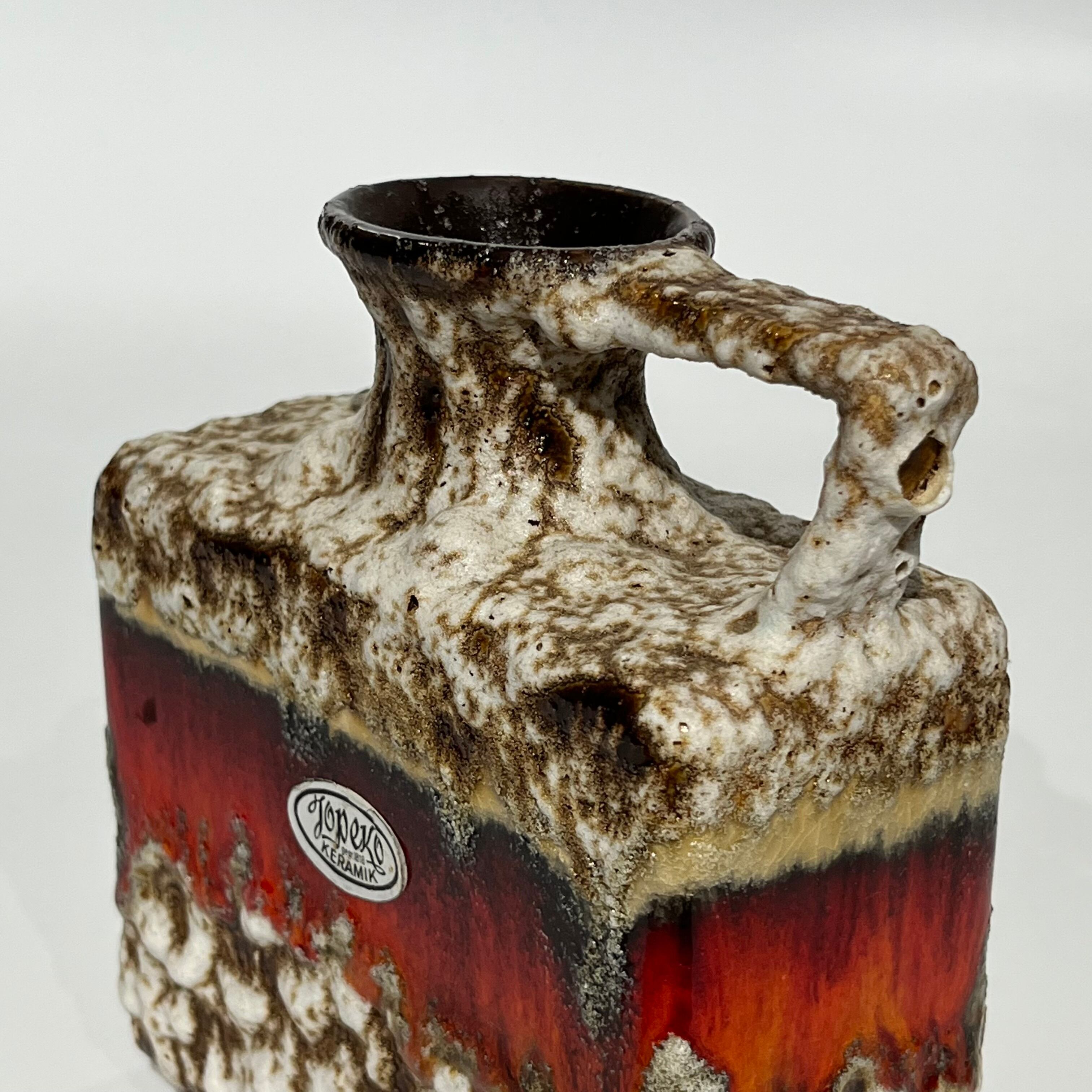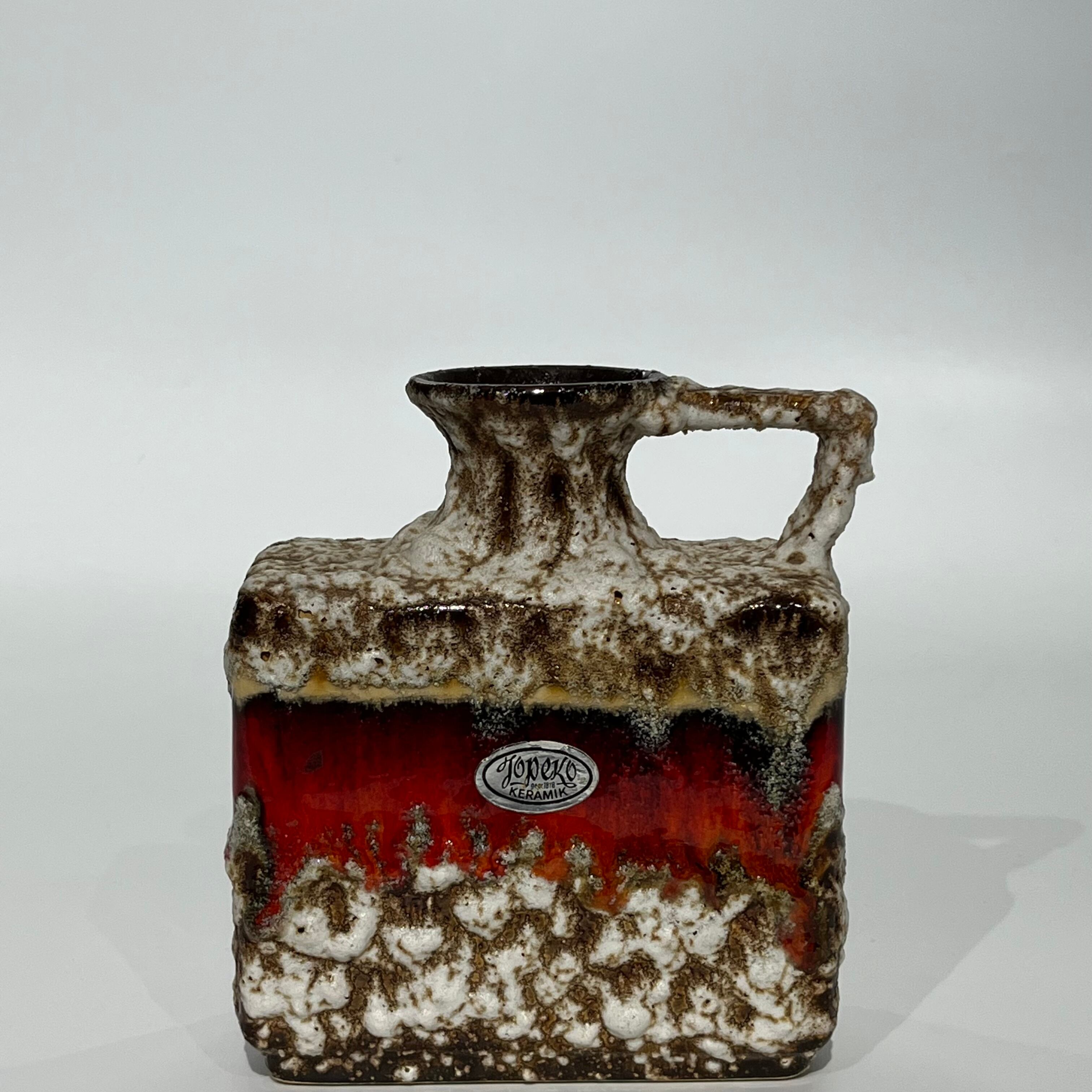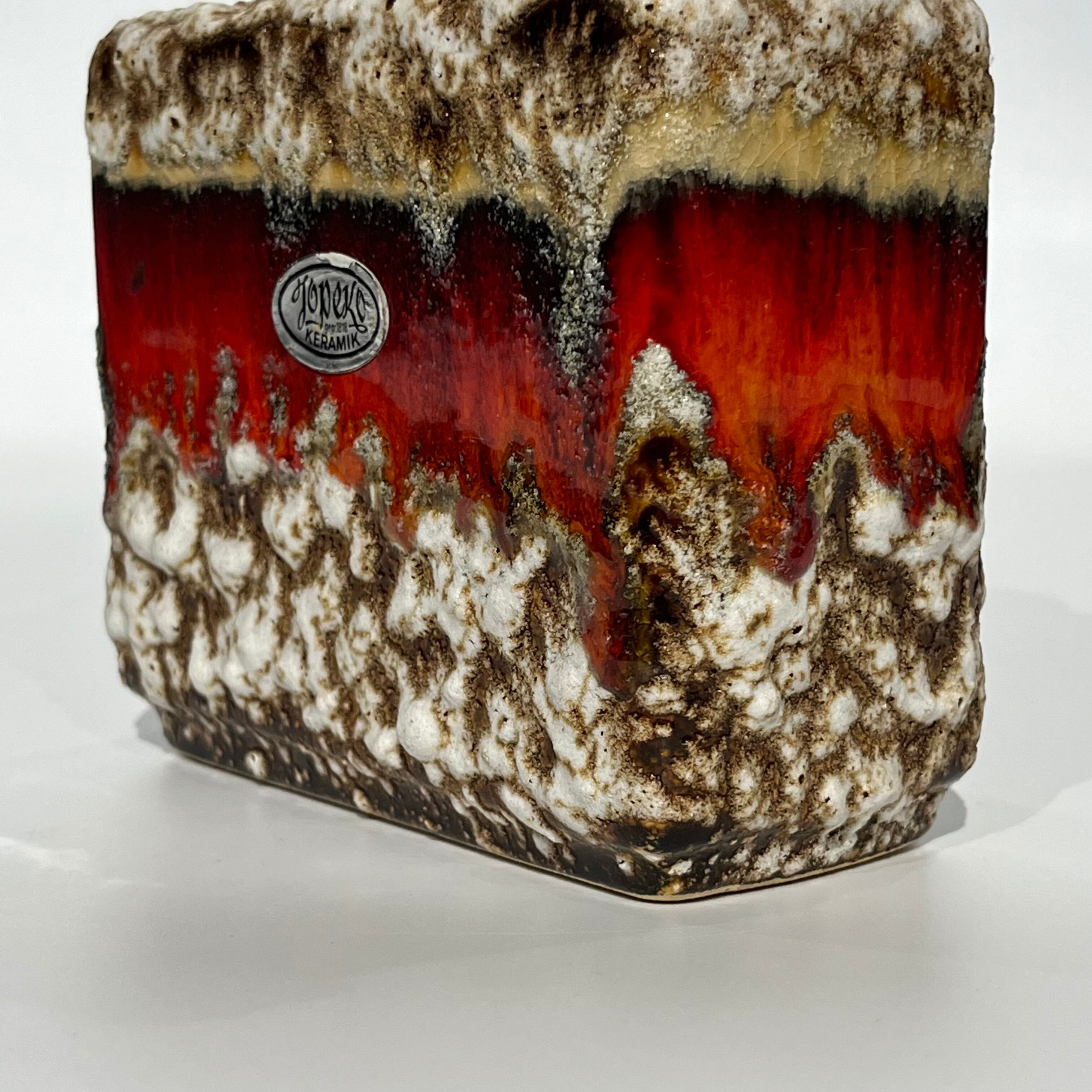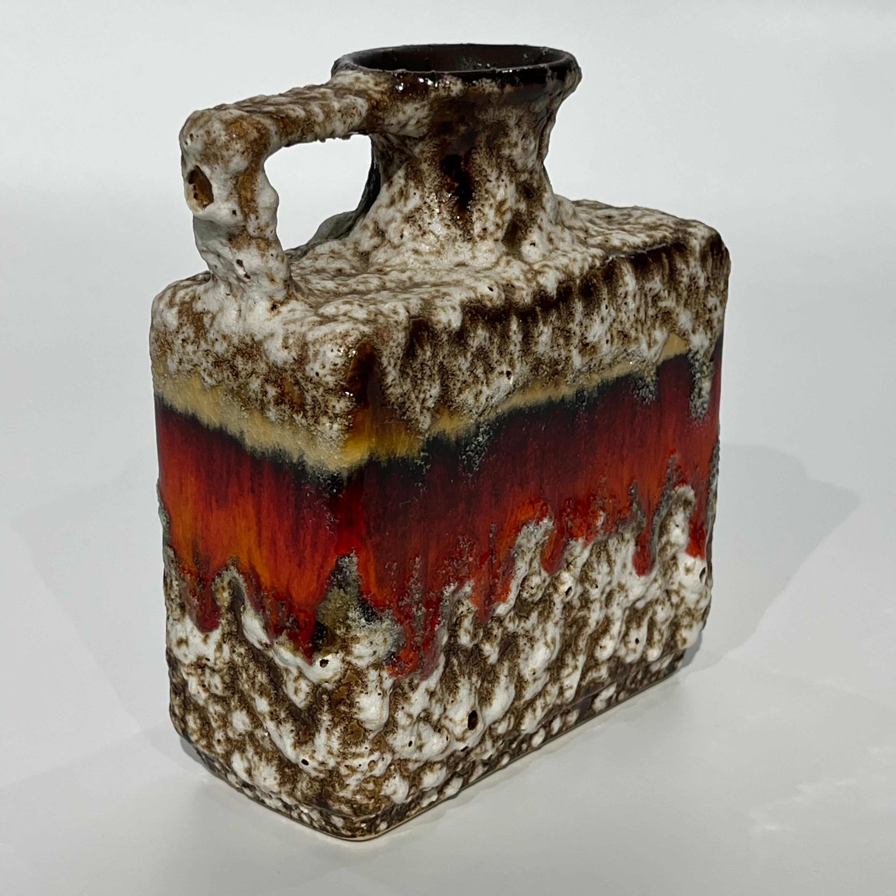 鮮やかな色彩で光沢があり、滴るようなFat Lava釉薬は、コレクターの間で非常に人気が 高く、すっきりとしたラインと幾何学的な形状 で、力強くモダンな印象を与えるフォルムが多 く見られます。