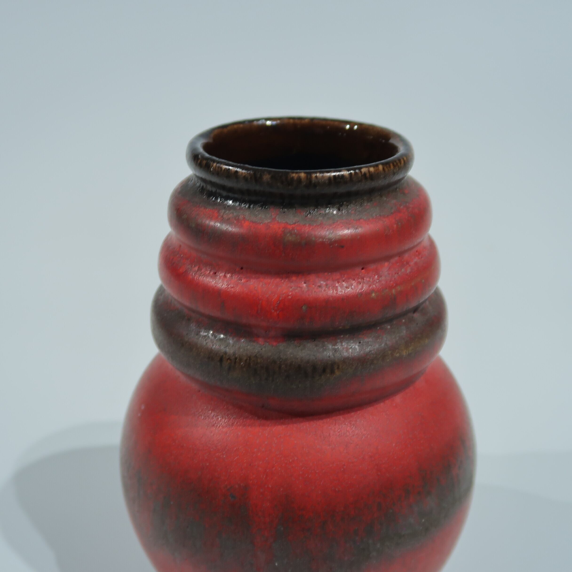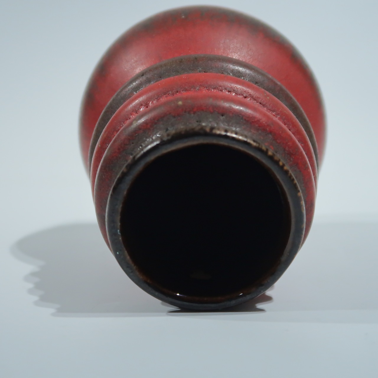 同社は急速に成長し、1950~80年代には陶 器製造の分野でドイツ最大のメーカーとなり、今日も確固たる地位を維持しています。形状に加えて釉薬でも、当時は最も幅広い品揃えを誇った他、輸出量も最大だったため、現在でも同社の製品はよく見られます。特に円筒形を基調にし たシンプルな形状で、型押し模様のある床置き 花瓶が代表的。色彩については当時主流だっ た赤やオレンジから、クリーム、ベージュ、茶色 などが多くを占めています。