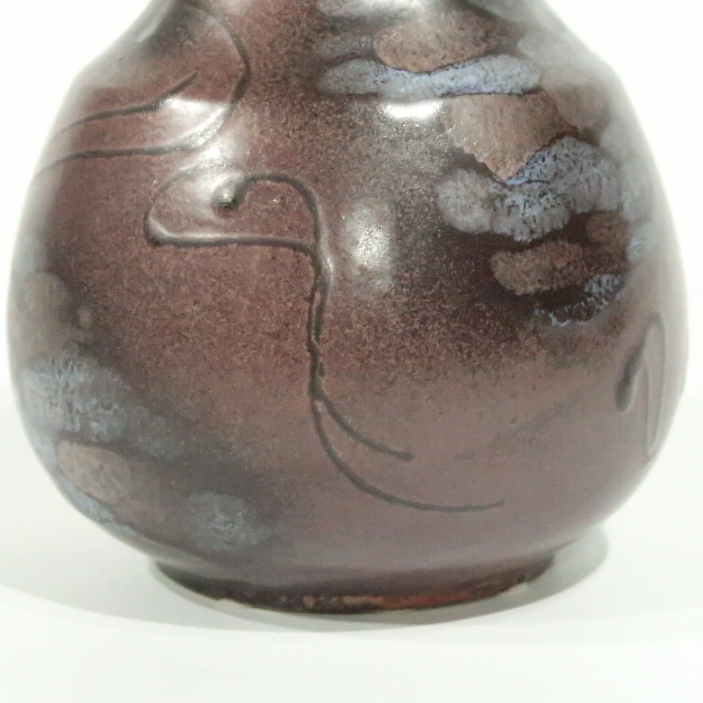 ダークなバーガンディカラーを基調とした、趣のあるマーブルパターンの花器が入荷しました。