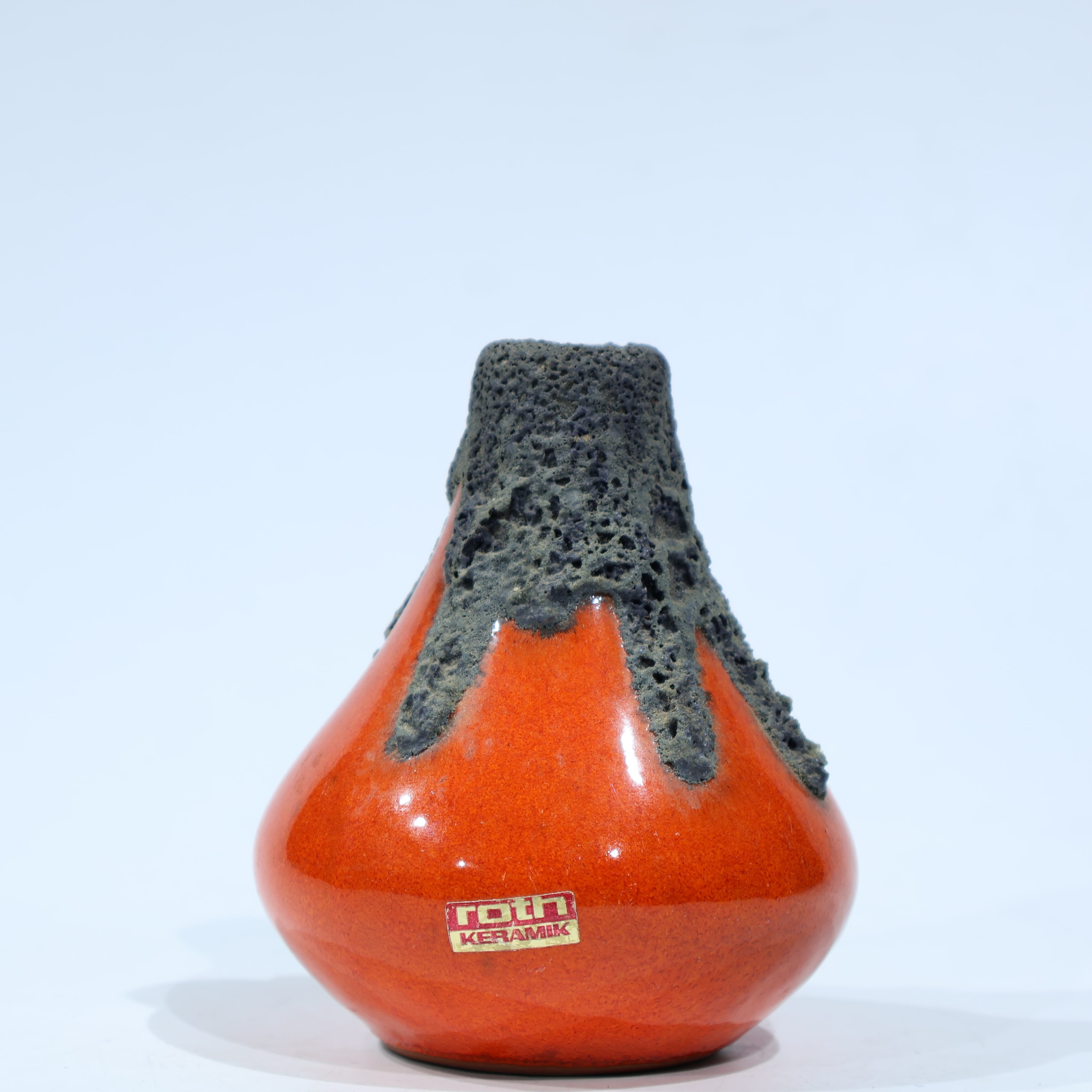 たは灰色のFat Lava釉薬の下に、光沢があり明るい色彩の釉薬が塗られているシリーズです。テクスチャーと色彩が強いコントラスを放つスタイルは、当時の典型的なデザインでした。