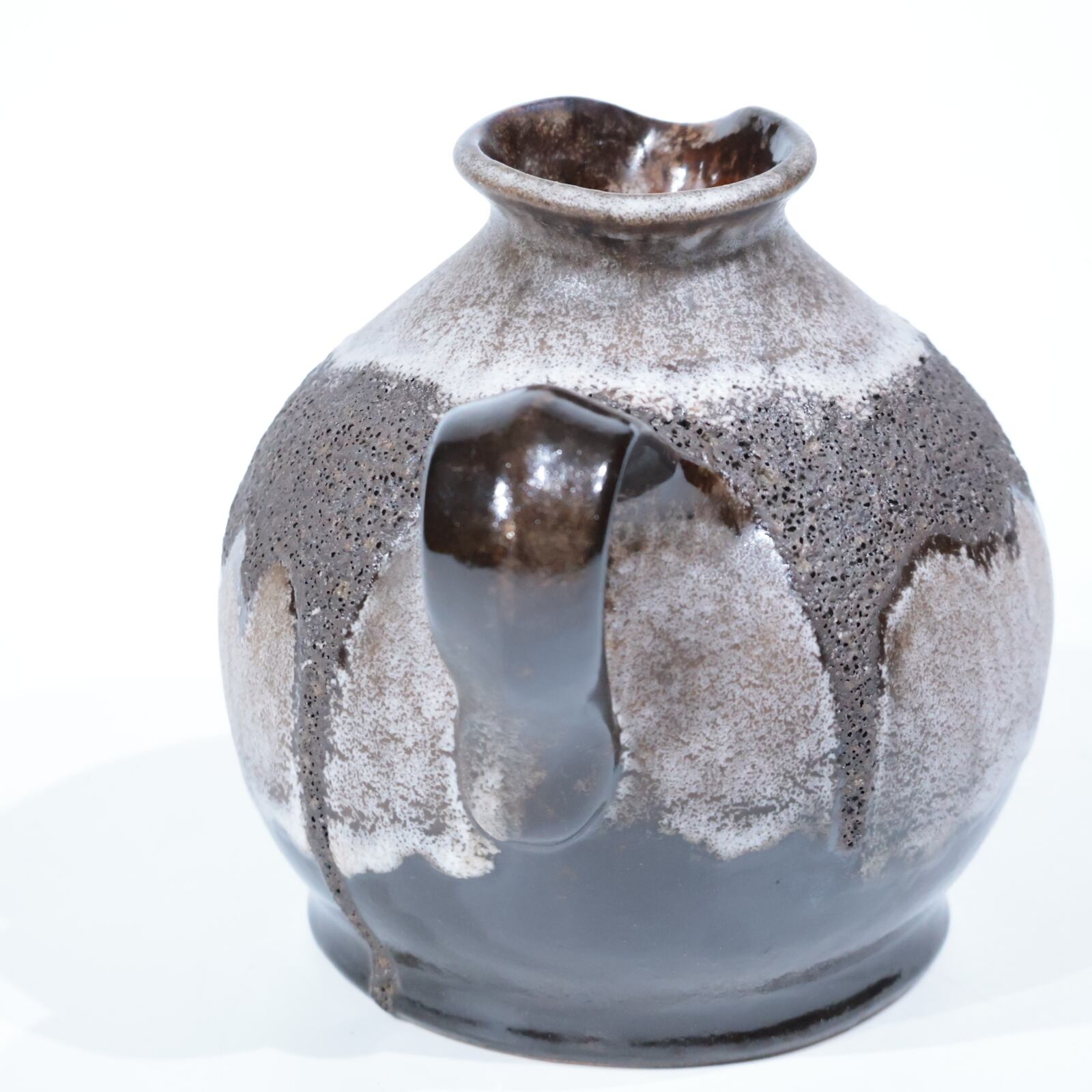 シンプルながらも力強いフォルムに、自然なブラウンとブラックの釉薬が施され、表面には独特の溶岩テクスチャーが美しく際立っています。